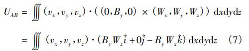 式中V為電磁污水流量計傳感器測量空間;W→為權(quán)函數(shù)。在直角坐標系(x,y,z)中,式(5)可以轉(zhuǎn)換為