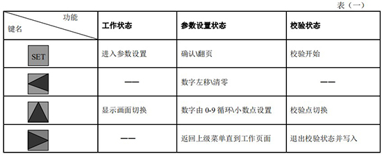 (3)標(biāo)況流量計(jì)算公式(若補(bǔ)償后單位為 U.0):(4)標(biāo)況流量計(jì)算公式(若補(bǔ)償后單位為 U.1):注:標(biāo)況指 20℃,1 標(biāo)準(zhǔn)大氣壓三、一體化液晶顯示表頭參數(shù)設(shè)置操作說明(V03Z)1、鍵盤按鍵說明2、 顯示窗字符說明注:表中 x 代表“0”或“1”;Zn:標(biāo)準(zhǔn)狀態(tài)下(20℃,1 標(biāo)準(zhǔn)大氣壓),被測氣體的壓縮系數(shù),Z:工作狀態(tài)下被測氣體的壓縮系數(shù)3、 操作說明3.1、本儀表表頭采用自導(dǎo)引式和菜單式相結(jié)合的參數(shù)設(shè)置方式,所謂自導(dǎo)引式參數(shù)設(shè)置方式就是用戶在進(jìn)入菜單 00 項(xiàng)后,表頭中的微電腦會(huì)自動(dòng)導(dǎo)引用戶去設(shè)置需要設(shè)置的參數(shù)。另外,用戶也可以通過菜單模式分別對各組參數(shù)進(jìn)行設(shè)置。蒸汽測量菜單框圖如下:3.2、參數(shù)設(shè)置約定:在設(shè)置各項(xiàng)參數(shù)時(shí),提示符閃動(dòng)代表該項(xiàng)參數(shù)沒有設(shè)置完或者尚未確認(rèn),可以通過按SET 鍵來確認(rèn)或者按→鍵退出;提示符不閃動(dòng)代表該項(xiàng)參數(shù)已設(shè)置完并確認(rèn),此時(shí)可以通過按 SET 鍵翻頁或者按→鍵退出。進(jìn)入?yún)?shù)設(shè)置時(shí),需要輸入密碼(6 位)并確認(rèn)進(jìn)入,為了防止誤進(jìn)入?yún)?shù)設(shè)置菜單,保證儀表正常工作,在設(shè)置密碼時(shí),使用↑鍵調(diào)數(shù)時(shí)不能循環(huán)調(diào)數(shù),只能單次調(diào)數(shù),只有密碼輸入正確進(jìn)入各項(xiàng)參數(shù)設(shè)置菜單后才可以對各位循環(huán)連續(xù)調(diào)整數(shù)據(jù)。3.3、儀表參數(shù)設(shè)置舉例:儀表出廠前各項(xiàng)參數(shù)已設(shè)置好,用戶無需設(shè)置。如果用戶需要設(shè)置某項(xiàng)參數(shù),請參照以下步驟,例如修改刻度流量值 QT:在工作狀態(tài)下,按 SET 鍵,顯示屏顯示 P,數(shù)字位為全零,8 秒鐘若無操作,自動(dòng)返回工作狀態(tài)。輸入密碼 :按數(shù)字↑鍵和左移←鍵,輸入密碼數(shù) xxxxx(出廠時(shí)默認(rèn)密碼為 000123),↑鍵調(diào)各位數(shù)字 0-9,每按 ←鍵一次數(shù)字向右循環(huán)一位,可通過多次按←鍵對整段數(shù)字清零,按→鍵可以返回工作狀態(tài)。菜單選擇項(xiàng):按 SET 鍵確認(rèn),顯示屏顯示如右圖所示,末行“00”閃動(dòng)調(diào)整該項(xiàng)值選擇不同參數(shù)設(shè)置菜單。該例直接按 SET 鍵進(jìn)入菜單 00 項(xiàng)設(shè)置刻度流量:QT 閃動(dòng),*一步:*先進(jìn)行小數(shù)點(diǎn)調(diào)整,可以通過←鍵對參數(shù)快速清零或者通過↑鍵進(jìn)行小數(shù)點(diǎn)調(diào)整,調(diào)整完畢,按 SET 鍵確認(rèn)(QT 仍閃動(dòng));*二步:數(shù)值調(diào)整,可以通過↑鍵對每位數(shù)字進(jìn)行調(diào)整,按 ←鍵一次數(shù)字向右移動(dòng)一位,調(diào)整完畢,按 SET 鍵確認(rèn),QT 停止閃動(dòng),該項(xiàng)參數(shù)設(shè)置完畢,可進(jìn)行下一項(xiàng)參數(shù)設(shè)置或者退出另外,單位設(shè)置 U.X 和補(bǔ)償方式設(shè)置 dX 通過↑鍵調(diào)整修改。3.4、校驗(yàn)項(xiàng)說明: 儀表出廠前,溫度和壓力通道已校驗(yàn)設(shè)置好,無需用戶重新校驗(yàn)。校驗(yàn)通道有密碼保護(hù),廠家不對外開放,如果需要重新校驗(yàn)溫度或者壓力通道,請專業(yè)人員與廠家技術(shù)人員聯(lián)系。4、計(jì)算公式說明4.1、蒸汽測量計(jì)算公式(1)渦街流量儀表工況體積流量計(jì)算公式:(2)密度 d,單位 Kg/m3(3)質(zhì)量流量計(jì)算公式,單位 Kg/h:(4)質(zhì)量流量計(jì)算公式,單位 t/h:4.2、氣體測量計(jì)算公式----標(biāo)況指 20℃,1 標(biāo)準(zhǔn)大氣壓(1)渦街流量儀表工況體積流量計(jì)算公式:(2)對比壓縮系數(shù) d(Zn/Z),單位 1(3)標(biāo)況流量計(jì)算公式,單位 Nm3/h:P1—工況絕壓,PN—標(biāo)況絕壓(Mpa),T1—工況熱力學(xué)溫度,TN—標(biāo)況熱力學(xué)溫度(K)