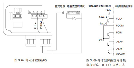 3.4.5 頻率(脈沖)、上下限報(bào)警、流向標(biāo)示等輸出均為集電極開路的電平輸出信號(hào)。