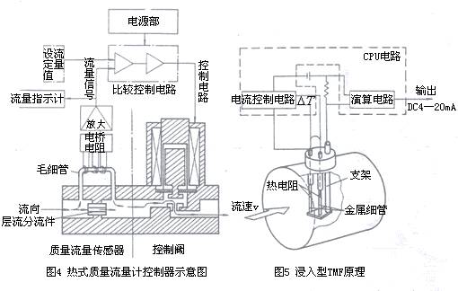 市場(chǎng)上熱分布式tmf按測(cè)量管內(nèi)徑分為細(xì)管型(也有稱毛細(xì)管型)和小型兩大類,結(jié)構(gòu)上有較大區(qū)別。小型測(cè)量管儀表只有直管型,內(nèi)徑為4mm;細(xì)管型測(cè)量管內(nèi)徑僅0.2~0.5mm。稍大者為0.8~1mm,極容易堵塞,只適用于凈化無(wú)塵氣體。細(xì)管型儀表還有一種帶有調(diào)節(jié)單元和控制閥等組成一體的熱式質(zhì)量流量控制器,結(jié)構(gòu)如圖4所示。