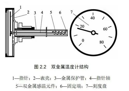 雙金屬溫度計的基本構造有指針、指針軸、雙金屬感溫元件、刻度盤、感溫管、底殼、上蓋圈、螺牙、表蒙等組成。